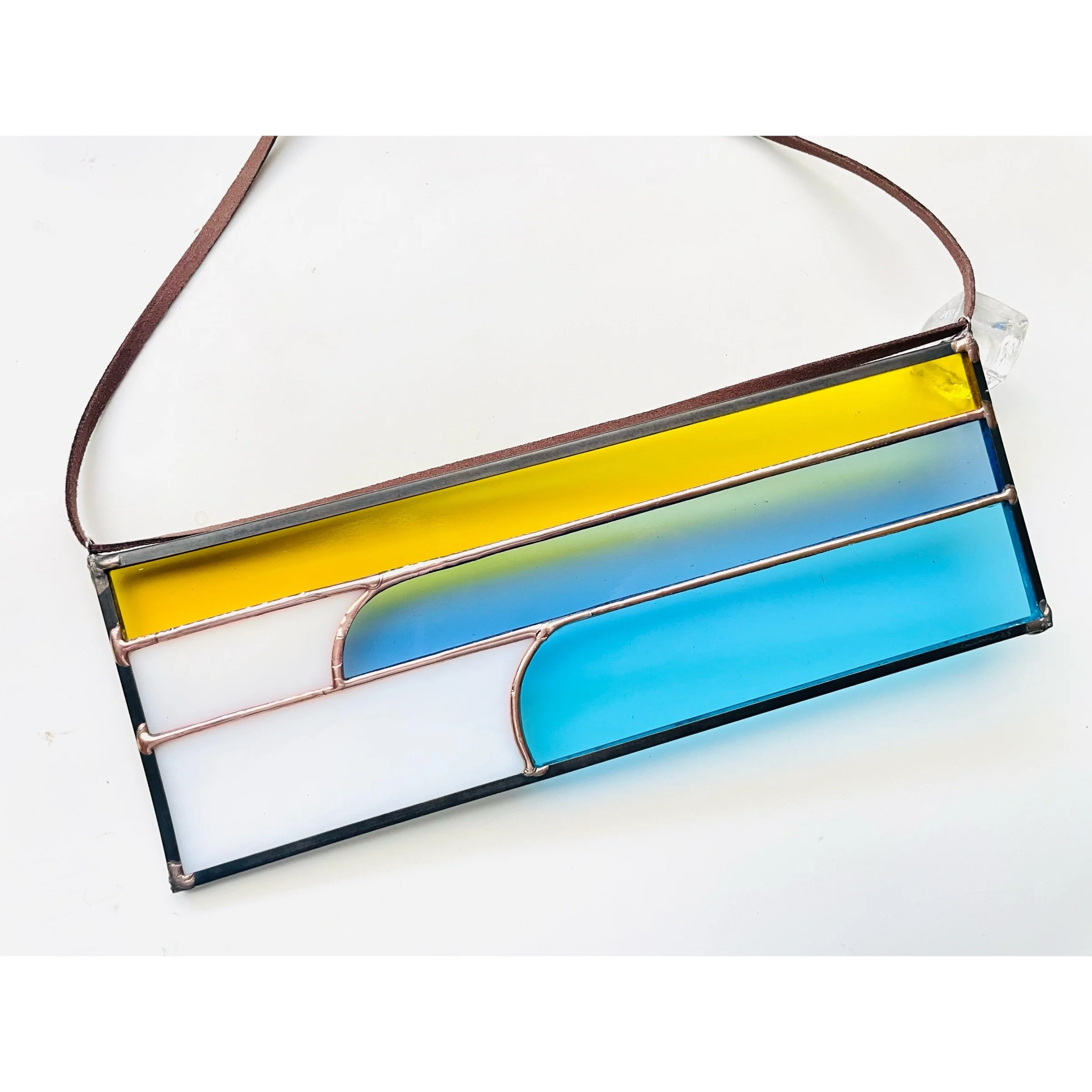 Beach Break is a modern, handcrafted stained glass piece inspired by my deep love for the ocean and the sunny beaches of Southern California. Whether it was surfing or just soaking up the sun, the beach has always been my happy place—and this piece is a tribute to that joy.